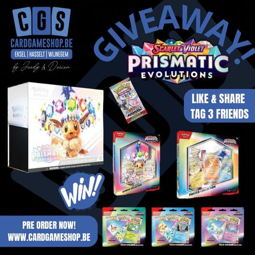 Om de release van de nieuwe Pokémon Prismatic Evolutions set te vieren, organiseren we een speciale giveaway! Maak kans op deze geweldige bundel