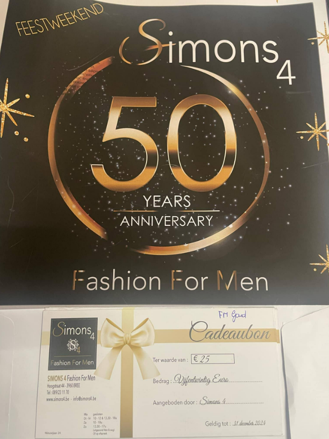 Simons 4 schenkt ons 5 cadeaubonnen van telkens 25 euro!