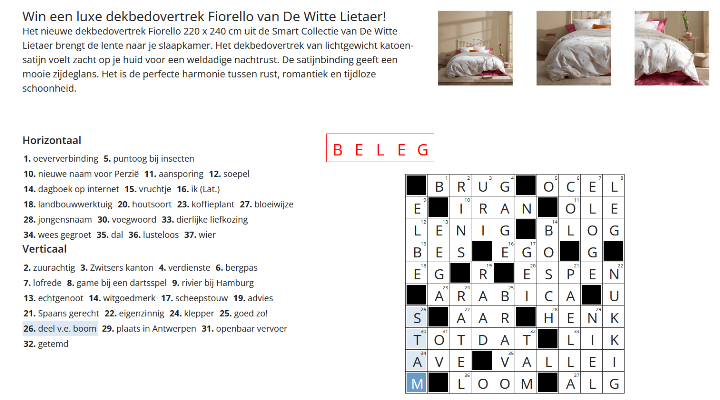 Los het Kruiswoordraadsel op en Win een luxe dekbedovertrek van De Witte Lietaer. Puzzel mee op Puzzelclub.be en maak kans op Prachtige Prijzen. -