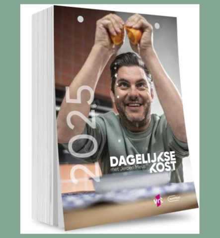 De Dagelijkse kost Scheurkalender 2025 is een onmisbare keukenhulp. Tijdens de week houdt Jeroen Meus het eenvoudig met snelle gerechten, op zaterdag en zondag laat hij je uitgebreider kokkerellen. Telkens met de heldere stap-voor-stapinstructies die je van Jeroen gewend bent. Wil jij kans maken op deze fantastische prijs?
