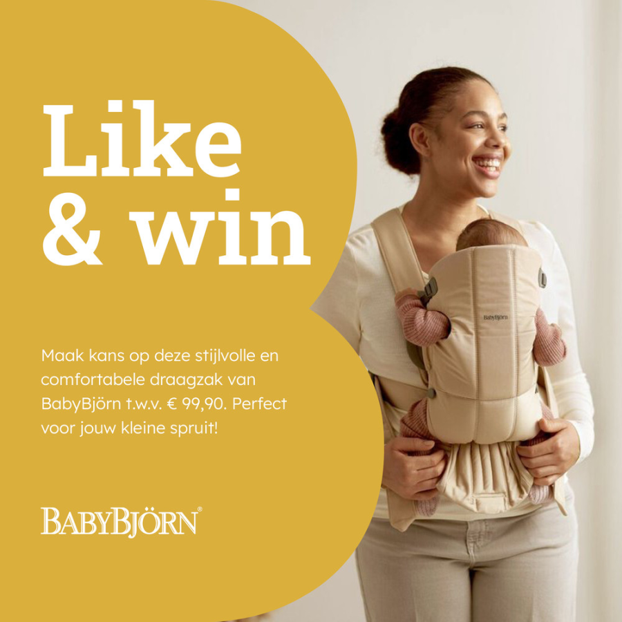Win een superfijne Babybjörn mini draagzak in de kleur geweven beige!😍 Ideaal om je mini steeds dichtbij te hebben.